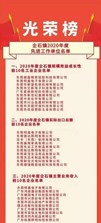 3月3日上午,企石鎮(zhèn)召開2020年度工作總結(jié)大會(huì),發(fā)布了《企石鎮(zhèn)2020年度先進(jìn)工作單位名單》,包括《2020 年度企石鎮(zhèn)規(guī)模效益成長(zhǎng)性前10名工業(yè)企業(yè)名單》《2020 年度企石鎮(zhèn)實(shí)際出口總額前10名企業(yè)名單》《2020 年度企石鎮(zhèn)主營(yíng)業(yè)務(wù)收入前10名企業(yè)名單》等10份名單。會(huì)議對(duì)2020年度企石鎮(zhèn)主營(yíng)業(yè)務(wù)收入前10名企業(yè)進(jìn)行了現(xiàn)場(chǎng)表彰。新望公司有幸入列:企石鎮(zhèn)2020年度規(guī)模效益成長(zhǎng)性10名。