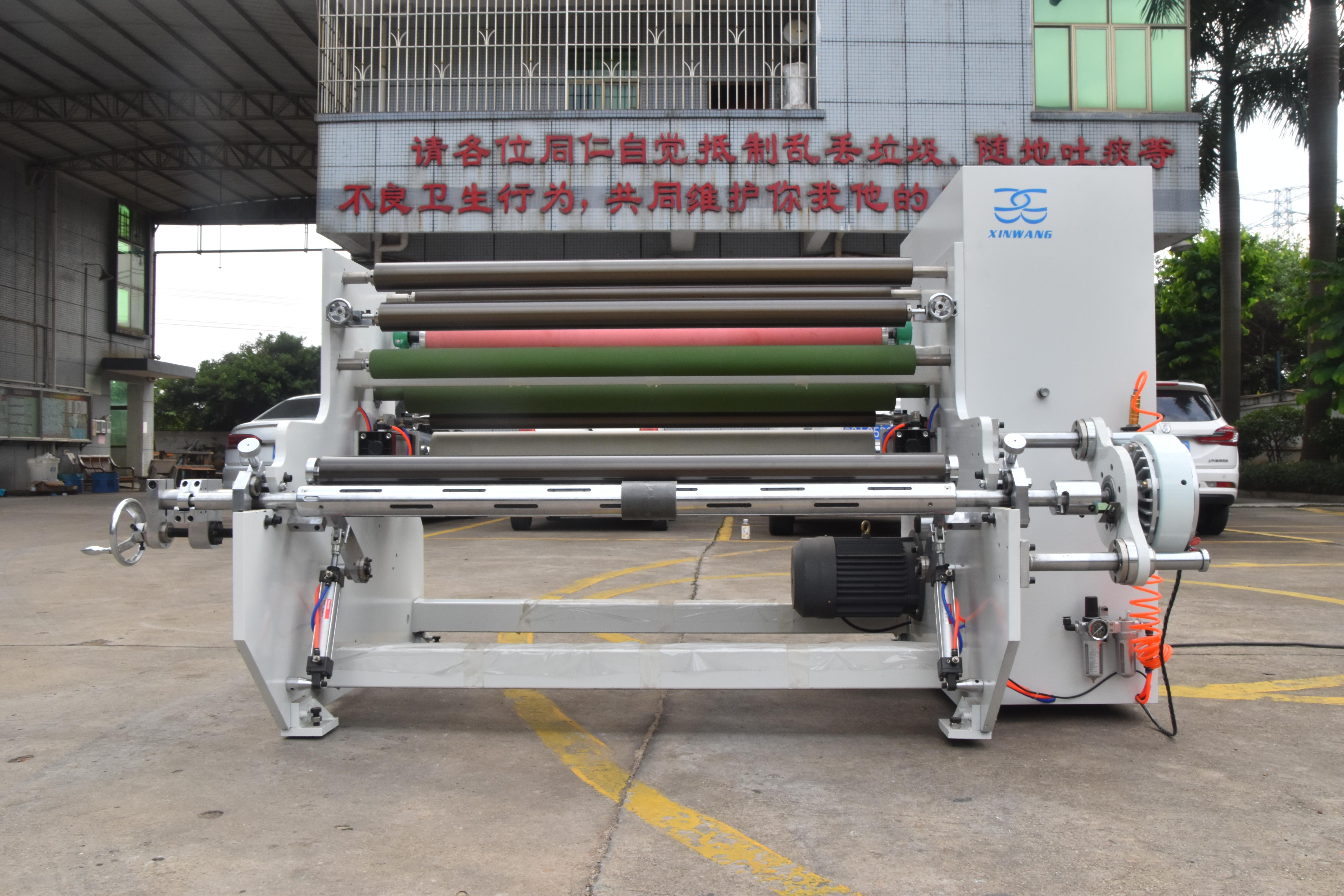 把基材沿各導輥裝好,同時將膠粘劑按比例調配好,啟動烘箱加熱系統(tǒng),當達到相應的設定溫度后,再開啟傳動電機,即可開始徐布生產(chǎn)。